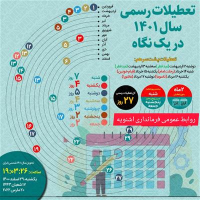 لحظه تحویل سال جدید، تعطیلات رسمی 1401 در یک نگاه @farmandari_oshnavieh