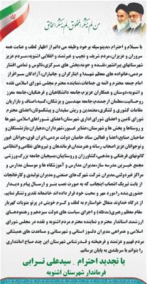 مراتب تقدیر و تشکر فرماندار شهرستان از اقشار مختلف مردم