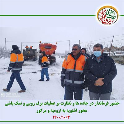 حضور فرماندار شهرستان در جاده های مواصلاتی و نظارت بر عملیات برف روبی و نمک پاشی و امدادگری در جاده ه- شنبه 4 دی 1400 ساعت 22:26