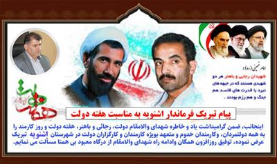 فرماندار شهرستان اشنویه بمناسبت فرارسیدن هفته دولت پیام تبریک صادر کرد