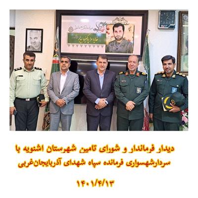 سید علی ترابی فرماندار شهرستان اشنویه بهمراه اعضای شورای تامین شهرستان اشنویه با سردار شهسواری فرمانده سپاه شهدای آذربایجانغربی دیدار کرد.