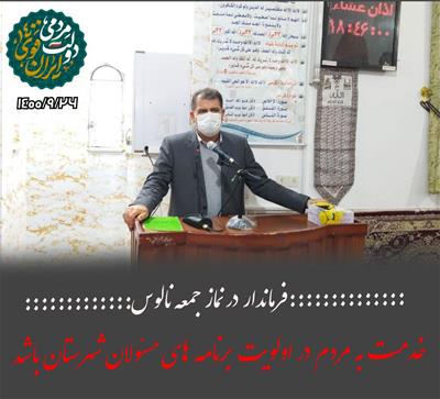 فرماندار اشنویه قبل از خطبه های نماز جمعه شهر نالوس