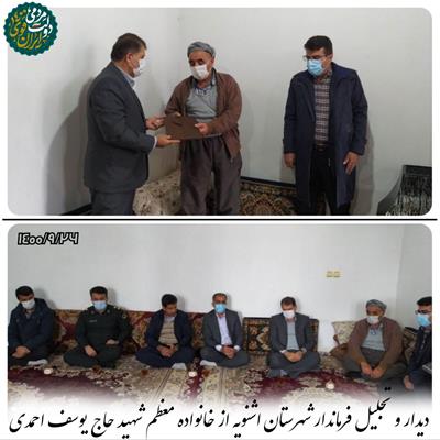 فرماندار اشنویه خانواده معظم شهید حاج یوسف احمدی در نالوس دیدار کرد