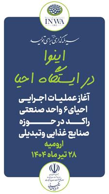 🔹عملیات اجرایی احیای 6 واحد صنعتی راکد در حوزه صنایع غذایی و تبدیلی در قالب رویداد "اینوا" با حضور استاندار آذربایجانغربی، روز 28 تیرماه در شهرستان ارومیه آغاز میشود.