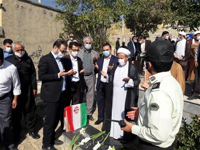 تجدید میثاق و عطر افشانی مزار شهدای گرانقدر با حضور فرماندار و اعضای محترم شورای تامین و اداری شهرستان به مناسبت چهلمین سالگرد دفاع مقدس در محل مزار شهدا