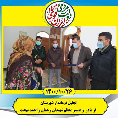 به مناسبت وفات حضرت ام البنین روز تکریم مادران و همسران شهدا صورت گرفت تجلیل فرماندار اشنویه از مادر و همسر معظم شهیدان رحمان و احمد بهجت