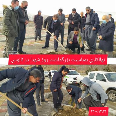 غرس نهال در آخرین روز از هفته منابع طبیعی ، بمناسبت بزرگداشت روز شهدا در شهر نالوس با حضور فرماندار، بخشدار، شورای اسلامی و شهردار نالوس