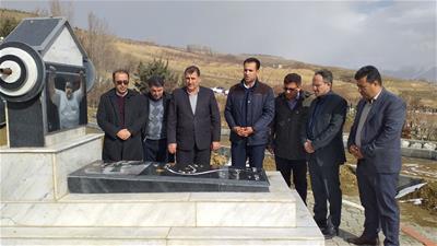 حضور فرماندار اشنویه بهمراه مدیرکل ورزش و جوانان بر مزار جهان پهلوان سیامند رحمان